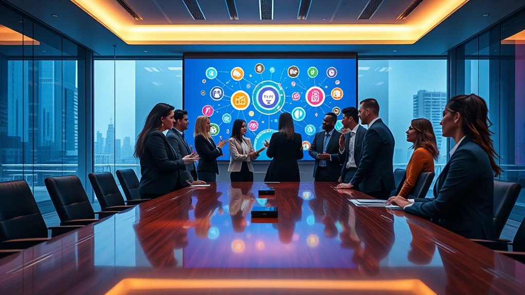 In 2025, effective change management revolves around engaging employees through transparent communication, clear explanations of benefits, and ongoing support to boost confidence. Align your efforts with organizational goals to foster agility and innovation, celebrating small wins along the way. Stay flexible by regularly evaluating progress and adjusting strategies as needed. Building a collaborative environment and addressing concerns promptly will help you navigate digital transformations successfully—if you want to learn more, there’s much more to uncover.