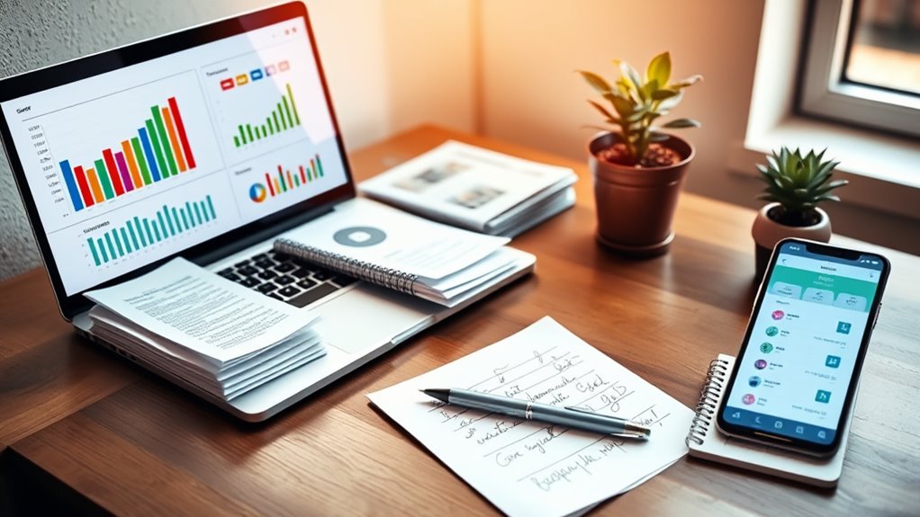 Ever wonder what tools make expense tracking easier? You should try budgeting apps like QuickBooks, Wave, or Mint—they help you organize expense categories and stay on top of your budget. Using budget templates can streamline your process even more. These tools offer real-time updates, automate calculations, and guarantee you don’t miss any expenses. Are you ready to take control of your finances and make tracking effortless? Give them a shot today!