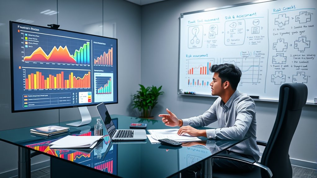 You should use tools like cash flow forecasting and credit analysis to assess risks early on. These tools help you visualize potential cash shortages and evaluate creditworthiness, giving you a clearer picture of financial stability. By regularly updating your cash flow models and reviewing credit reports, you can spot issues before they escalate. This proactive approach keeps your startup resilient and better prepared for financial uncertainties ahead.