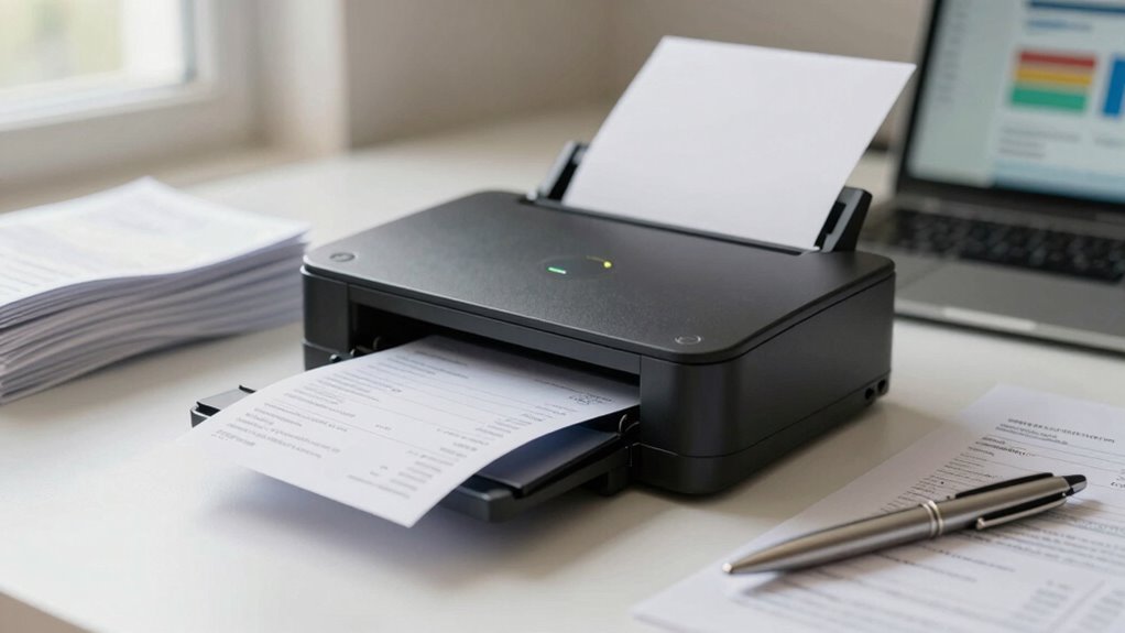 Regularly scanning and organizing your receipts makes expense reimbursements much smoother and faster. When your receipts are well-managed, expense validation becomes straightforward, reducing delays and errors. Consistent receipt organization allows you to quickly locate documents and confirm expenses, preventing missing or misplaced receipts. This practice also helps you maintain a clear record for eco-friendly disposal, ensuring that unnecessary paper waste is minimized. Incorporating media literacy into your routine can help ensure the information on your receipts and related documents is accurate and trustworthy. Additionally, understanding privacy policies related to receipt storage can help protect your personal and financial data from potential misuse.