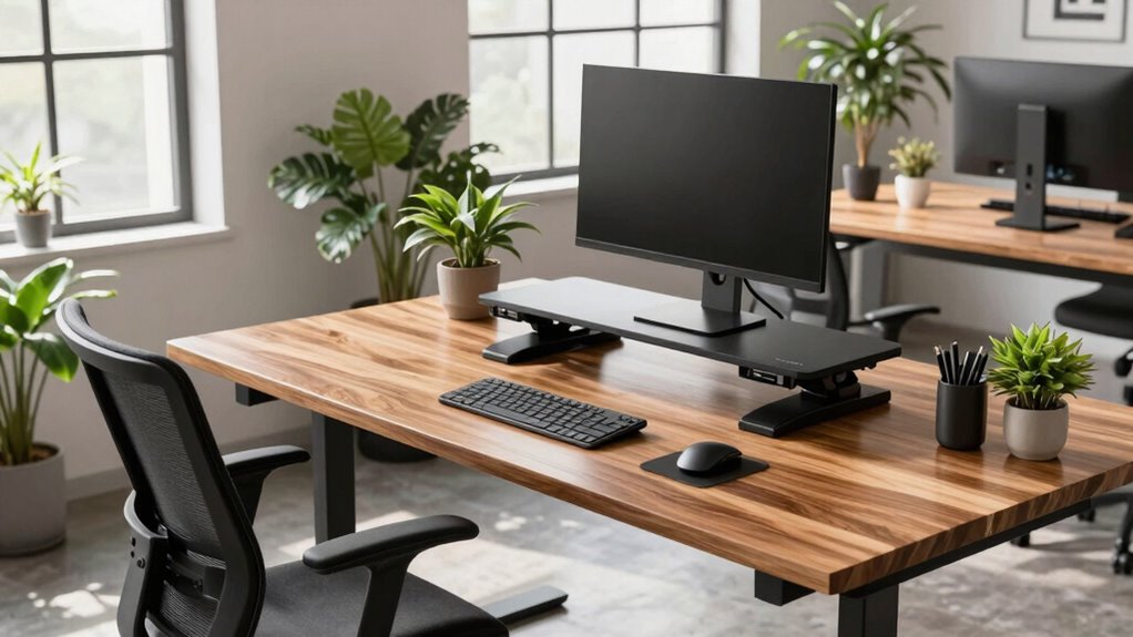 Your choice of ergonomic accessories makes a significant difference in whether your standing desk setup feels natural and supportive. Think adjustable monitor arms, keyboard trays, and anti-fatigue mats, all designed to reduce strain and improve posture. These accessories help you maintain proper alignment, preventing common issues like neck pain or back aches. When your desk supports ergonomic accessories, you’re more likely to stand comfortably for longer periods and stay focused on your work.