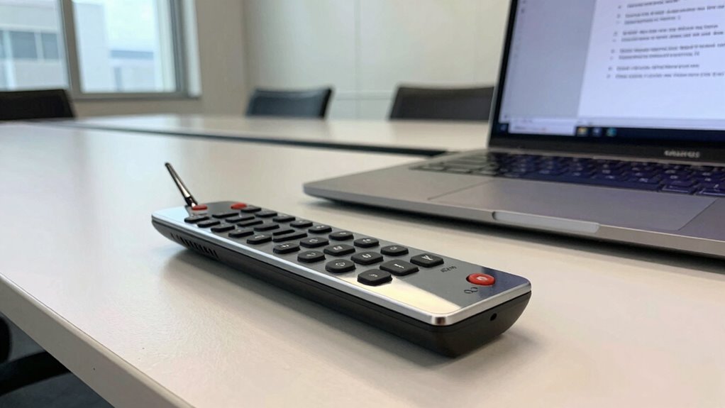 Seamless technology integration transforms your presentations from static slides into dynamic, engaging experiences. With reliable wireless connectivity, you can move freely without tangled cords or awkward setups, making your delivery smoother. This allows you to switch between devices effortlessly and share content instantly. An ergonomic design guarantees your gear is comfortable and easy to handle, reducing fatigue during long sessions. Features like intuitive controls and quick setup save time and keep your focus on your message, not on fiddling with equipment. When your tools work seamlessly together, your presentation feels natural and professional. This integration removes distractions, boosts confidence, and helps you engage your audience more effectively. Ultimately, the right technology enhances your delivery, making your message resonate long after the slide deck ends. Additionally, choosing products with thorough analysis and honest reviews ensures you invest in reliable, well-suited equipment that truly enhances your presentation experience.
