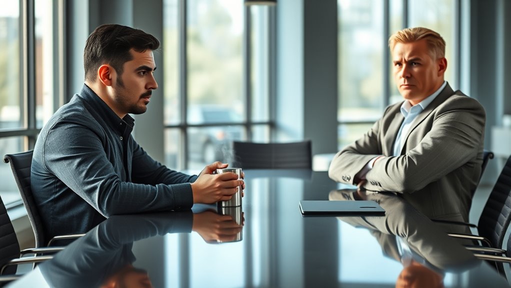 You should watch for personality traits that might lead to conflicts, like stubbornness or arrogance, which can cause personality clashes. If your co-founder struggles with open communication or tends to dismiss others’ ideas, communication breakdowns are likely. These traits can hinder teamwork and decision-making. Recognizing these early helps you address issues proactively, ensuring smoother collaboration and reducing the risk of future disputes.