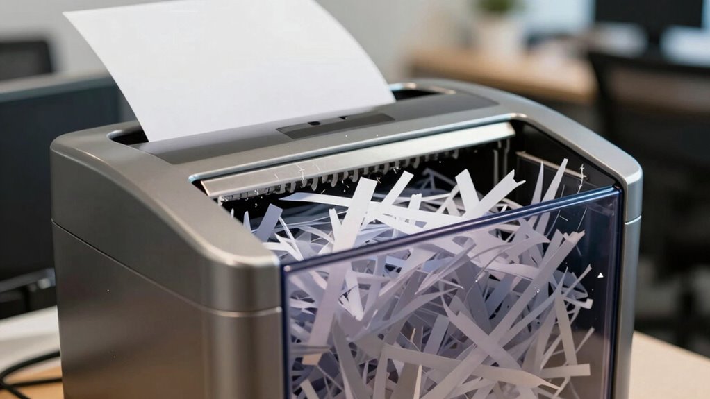 When it comes to choosing a shredder, you might assume that paying more automatically means better security. However, higher cost doesn’t always guarantee enhanced protection. Cheaper shredders can sometimes meet your security needs just as well, especially if you understand the level of paper recycling and shredder maintenance involved. Investing in a more expensive shredder might seem like a safeguard, but if you neglect regular maintenance, even the priciest model can fail to secure sensitive information. Conversely, a reasonably priced shredder, properly maintained, can provide sufficient security for your office. It is crucial to balance cost with your specific security requirements, rather than assuming a direct link between expense and safety. Focus on choosing a shredder that aligns with your paper recycling habits and maintenance capabilities.