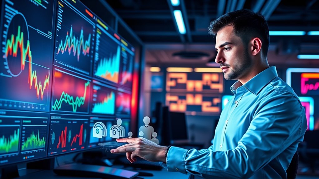 You can rely on AI agents to adapt to changing market trends through continuous market trend analysis, which helps identify shifts quickly. Their algorithm adaptability allows them to modify strategies in real-time, ensuring your campaigns stay relevant. By constantly learning from new data, these agents fine-tune targeting and messaging, so you remain competitive and responsive, even as market conditions evolve rapidly.
