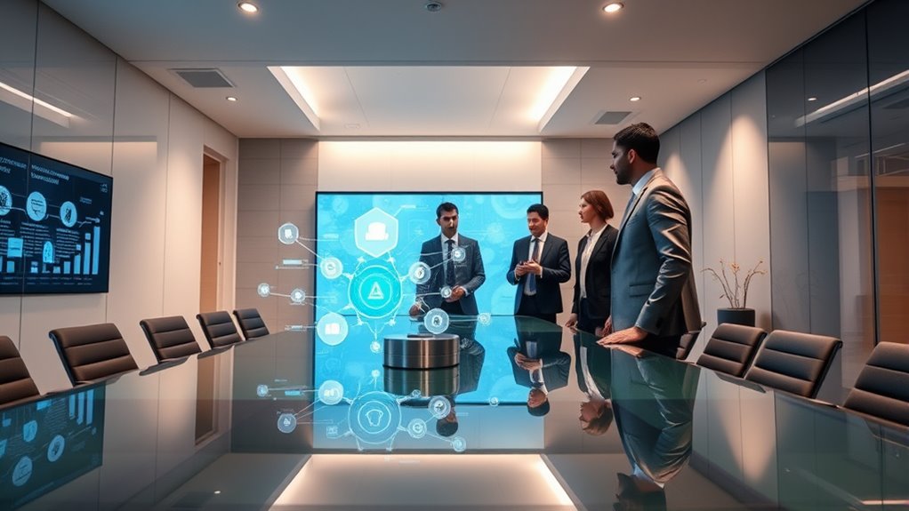 AI agents can’t fully replace human decision-making because ethical considerations and decision transparency remain vital. While they can assist and enhance efficiency, humans must oversee and interpret AI suggestions to guarantee moral and ethical standards are maintained. You need to balance AI’s capabilities with human judgment, especially in complex or sensitive situations, so decisions stay transparent and aligned with your business values.