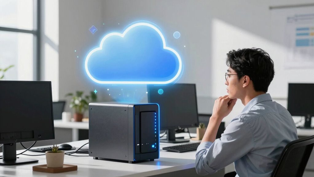So, you’re drawn to the cloud, thinking it’s the easier choice, while a NAS might actually give you more control. Ironically, what seems like a hassle—managing on-site storage—could save you money and headaches in the long run. Ultimately, your decision hinges on your needs, not the hype. So go ahead, reach for the cloud—just don’t forget, sometimes the best solution is the one right under your nose.