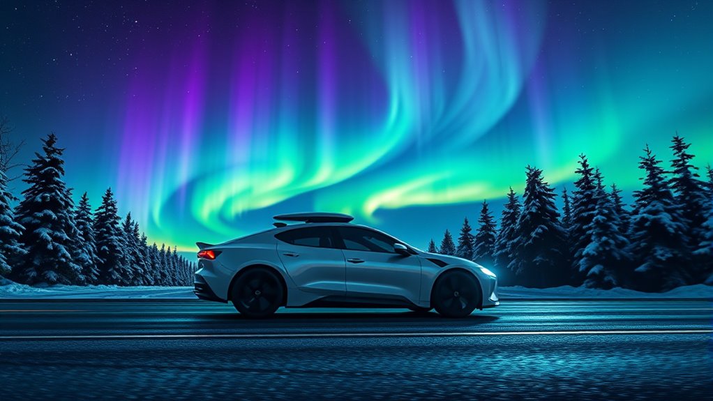 Aurora Innovation is shaping its path to autonomous vehicles by focusing on advanced sensor fusion, combining lidar, radar, and cameras for reliable perception across diverse conditions. They actively engage with regulators to develop safety standards, ensuring their technology aligns with evolving rules. This cautious yet innovative approach helps build trust and accelerates deployment. To learn more about how Aurora navigates technical and regulatory challenges, keep exploring their strategies.