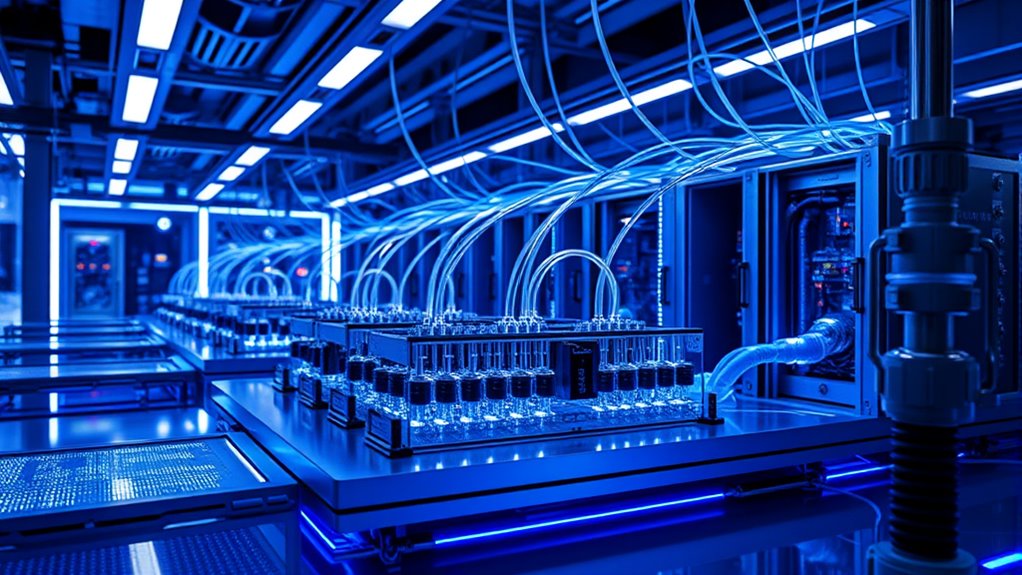 PsiQuantum is working to build scalable quantum computers by tackling key challenges like quantum error correction, qubit coherence, and material development. Their approach involves encoding information across multiple qubits to detect and fix errors, which is essential for reliable, large-scale systems. They focus on creating stable, long-lasting qubits using innovative materials to improve coherence times. Keep exploring this journey to discover how these advancements could revolutionize quantum technology and what comes next.