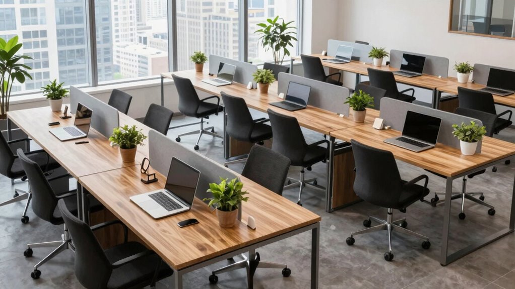 Think of choosing a compact coworking desk like finding the perfect lighthouse—it guides your work through tight spaces and busy days. With the right desk, your productivity can shine even in the smallest harbor. So, weigh your needs, consider portability, and pick the one that’ll keep your workspace bright and organized. After all, the right desk isn’t just furniture; it’s the beacon that steers your day to success.