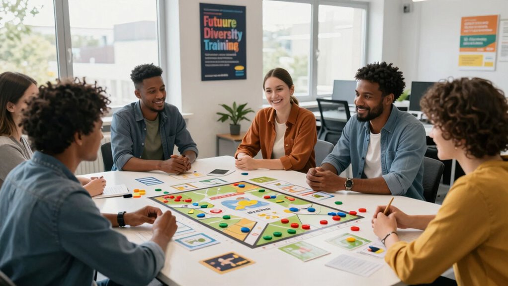 Cultural sensitivity is vital when selecting diversity training board games because it guarantees respect for different customs, traditions, and social norms. When games include culturally diverse scenarios and perspectives, they help participants build awareness and reduce unconscious biases. Choosing games with culturally sensitive content prevents unintentional offense and fosters a respectful learning environment. Well-designed cultural sensitivity modules within games promote empathy and understanding of experiences different from one’s own. It’s essential to evaluate whether a game’s content reflects a broad range of cultural backgrounds, ensuring it supports meaningful and respectful diversity education. This approach not only enhances learning outcomes but also demonstrates a genuine commitment to inclusivity, making the training more effective and impactful for all participants.