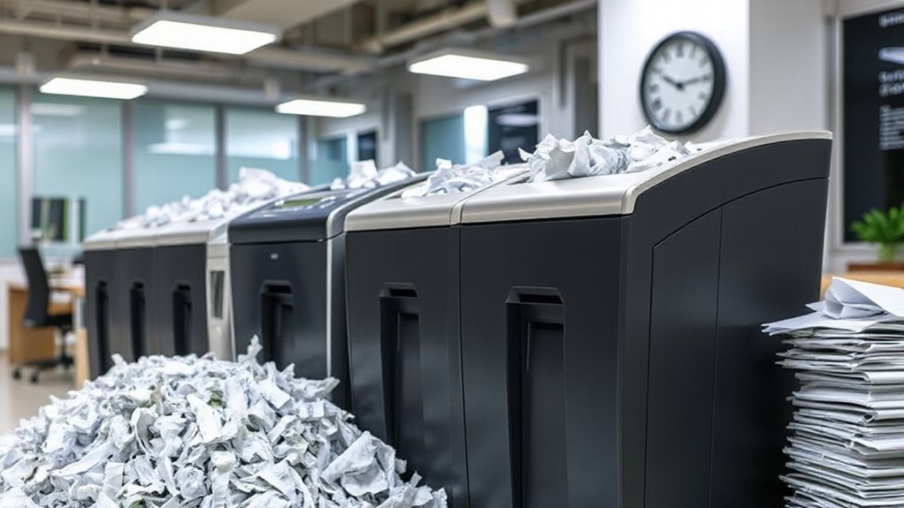 Choosing the right high-capacity shredder is like assembling a superhero team—each piece needs to work seamlessly to protect your privacy. I once underestimated a shredder’s capacity and ended up with a mountain of paper chaos. Now, I always pick one that can handle my workload effortlessly. Remember, investing in a powerful shredder isn’t just about convenience; it’s about safeguarding your peace of mind in today’s data-driven world.