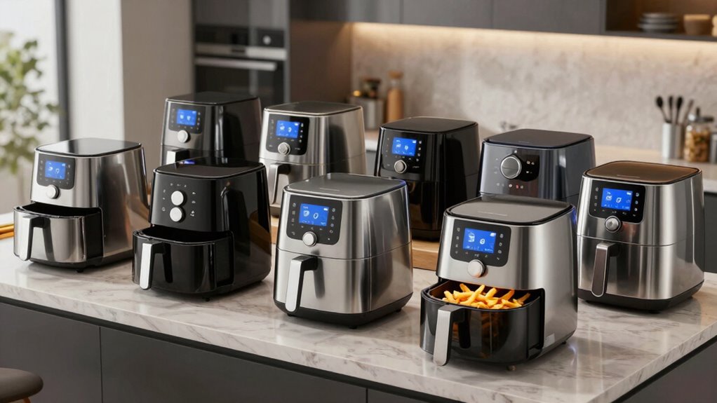 Safety features are the backbone of these air fryers, and they don’t disappoint. I find that they often include automatic shut-off, cool-touch exteriors, and overheat protection, giving me peace of mind while cooking. Many also have non-slip feet and secure lids to prevent accidents. It’s like covering all bases so I can focus on cooking without a worry, making meal prep safer and stress-free.
