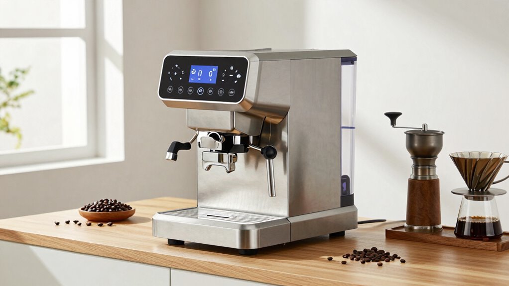 Choosing the right high-ticket electric coffee roaster is like finding the perfect symphony for your home bar—it elevates every sip. With options featuring smoke filters, adjustable temps, and precise controls, you’re set to craft barista-quality roasts at home. Think of your coffee setup as a painter’s palette—rich, versatile, and full of potential. So, pick your machine wisely, and let your coffee journey turn every morning into a masterpiece.