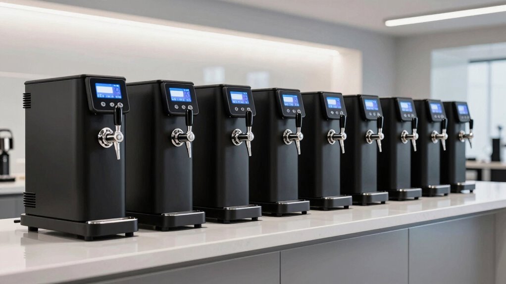 If you’re exploring the 15 best high-ticket nitro cold brew keg systems for 2026, I recommend options like the Royal Brew Nitro Cold Brew Coffee Maker Kit, Summit’s 24″ Nitro Kegerator, and GrowlerWerks’ uKeg Nitro. These systems combine professional performance, durability, and ease of use, perfect for home baristas or commercial settings. Interested in discovering which models suit your needs and how they elevate your cold brew game? Keep going to find out more.