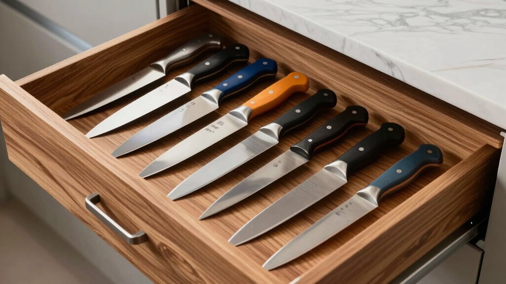 Choosing the right in-drawer knife organizer is like finding the perfect puzzle piece—it makes your kitchen complete. Whether you need space for a few or many knives, there’s an option out there that fits your needs perfectly. Think of these organizers as your kitchen’s secret weapon, keeping everything sharp, safe, and within easy reach. Pick the one that feels right, and watch your kitchen stay both tidy and efficient—like a well-orchestrated symphony.