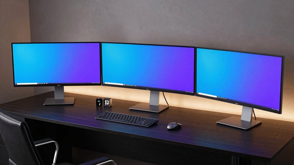 Choosing the right desktop workstation goes beyond just stability; it also offers essential ergonomic benefits that can make a significant difference during long email sessions. An ergonomic setup helps reduce strain on my neck, shoulders, and wrists, promoting better posture and preventing discomfort. Adjustable height features allow me to switch between sitting and standing, lowering the risk of musculoskeletal issues. Organized cable management and a clutter-free workspace minimize distractions and improve ergonomic efficiency. Built-in LED lighting and monitor mounts enhance visibility, reducing eye strain and fatigue. Additionally, features like keyboard trays and anti-fatigue mats support natural hand and foot positioning, making long hours more comfortable. These ergonomic benefits are crucial for maintaining productivity and health during extended work sessions.