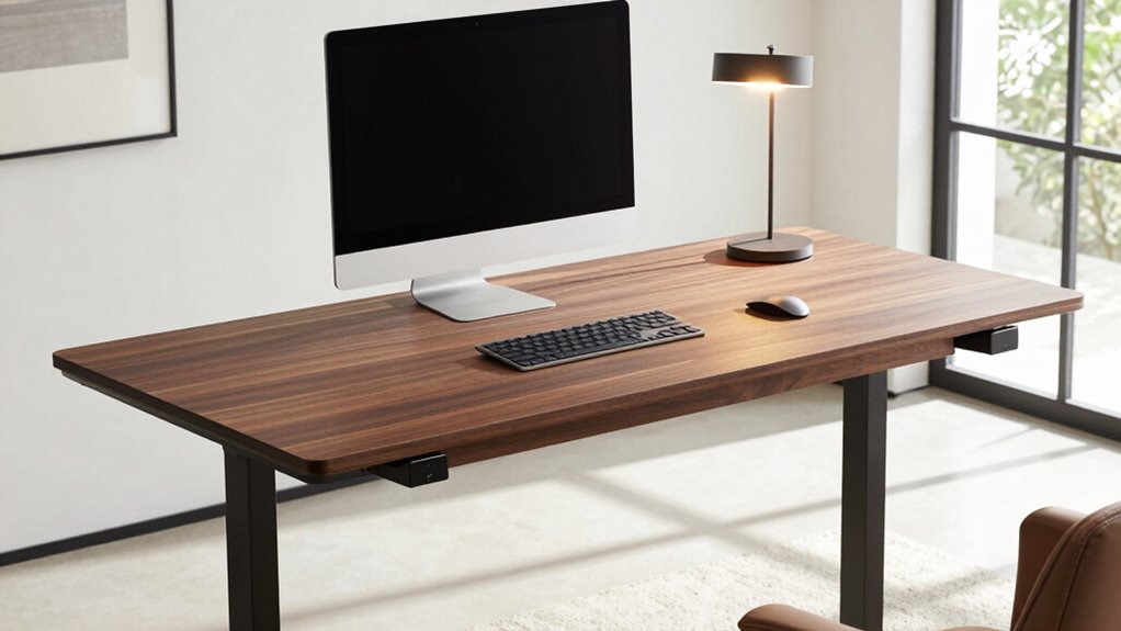 Built-in power features can considerably boost the functionality and organization of your home office setup. Many premium electric standing desks come with multiple outlets and USB ports, making it easy to charge devices without clutter. Usually, these desks have three or more power outlets and several USB ports, supporting various electronics simultaneously. Integrated power solutions help keep your workspace tidy by eliminating extension cords and power strips, which also enhances safety. Adjustable placement options, like side-mounted or clip-on outlets, allow you to customize power access based on your layout and preferences. High-quality desks often include safety features such as surge protection and automatic shutdown, ensuring reliable and secure power usage. These features streamline your workflow and keep your workspace neat and safe.