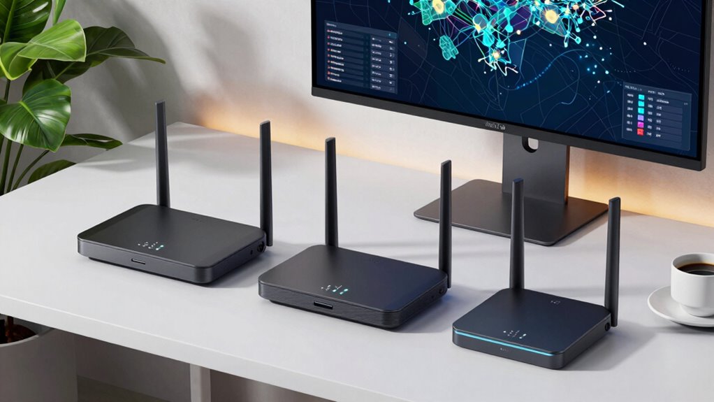 Choosing the right Wi-Fi 7 mesh system feels like finding the perfect puzzle piece—when it clicks, your home office runs seamlessly. Whether I picture a sleek router perched on a bookshelf or a multi-pack quietly covering every corner, it’s clear that high-quality mesh systems turn chaos into calm. With the right setup, you’ll forget about dead zones and enjoy a smooth connection, just like a well-orchestrated symphony in your own digital space.