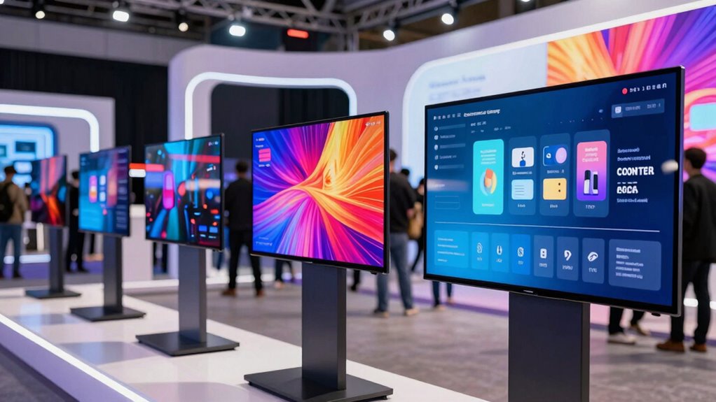 I believe the latest display tech trends for 2026 events include ultra-thin, flexible screens that can be customized to any shape or size, making displays more versatile. I see a rise in 8K resolution for crystal-clear visuals and increased use of OLED and microLED technology for vibrant colors and better contrast. Interactive displays with touch, gesture, and even AR integration are becoming essential, enhancing attendee engagement and creating immersive experiences.