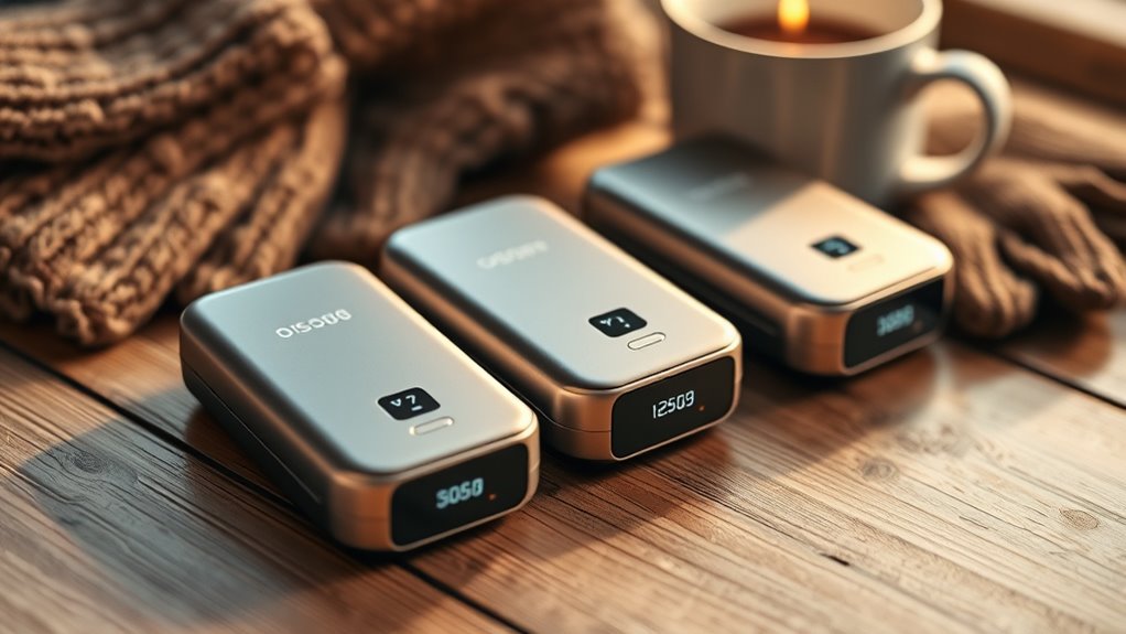 Did you know that over 60% of consumers now prefer eco-friendly products? I’ve found several rechargeable hand warmers made from sustainable materials or designed with energy efficiency in mind. These options help reduce waste and lower environmental impact while keeping your hands warm. If you’re eco-conscious, look for models with rechargeable batteries, eco-friendly materials, and energy-saving features—these are great choices for warmth and sustainability.
