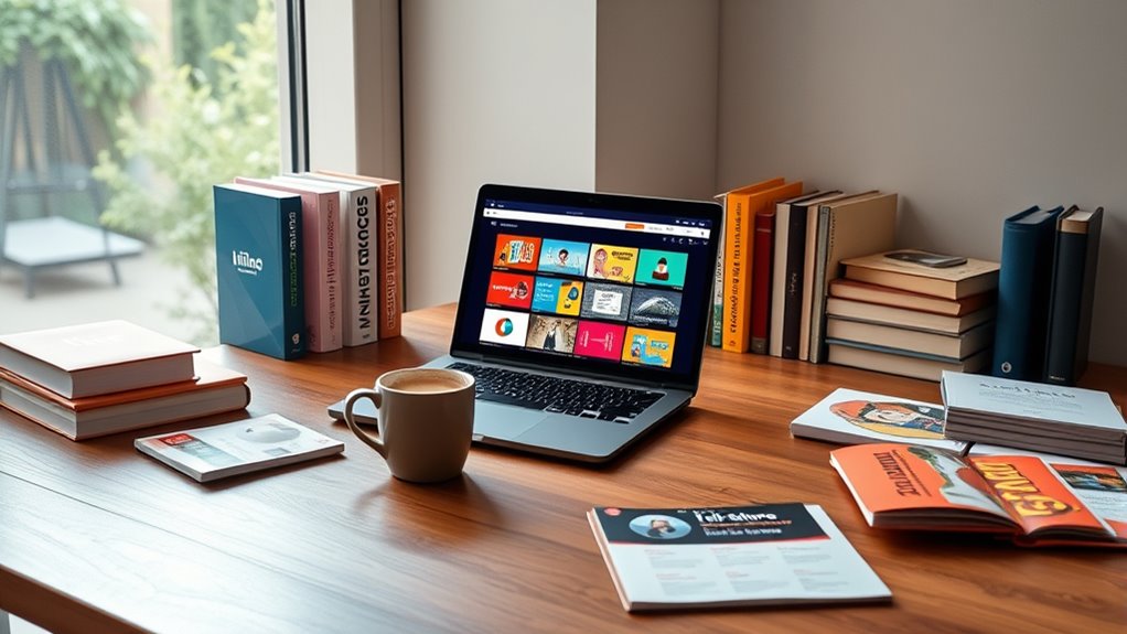 Choosing a Rosetta Stone lifetime subscription means ensuring you have access to solid support and resources that keep your learning on track. I look for deals that include thorough customer service, technical help, and troubleshooting options, so I’m never stuck. Supplementary materials like audio companions, practice exercises, and language guides boost my progress. I also check if there are tools for tracking my advancement, such as dashboards or feedback reports, to stay motivated. Community forums, live tutoring, or mentorship options are valuable for extra guidance and encouragement. Additionally, I prefer subscriptions that offer ongoing updates, new content, or access to multiple language courses, ensuring continuous learning and value over time. These resources are essential for making the most of my language journey.