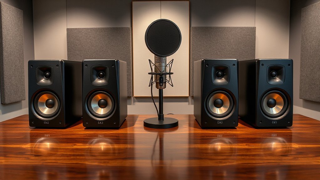 Choosing the right studio monitors can truly elevate your podcast quality. Did you know that 78% of professional podcasters say accurate sound reproduction boosts listener engagement? Whether you’re on a budget or seeking premium quality, the options listed offer something for everyone. Remember, investing in good monitors isn’t just about sound—it’s about delivering your message clearly and confidently. So, pick the right pair and let your voice shine through every episode.