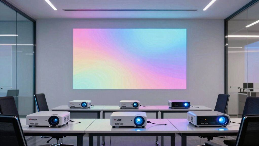 If you’re looking for the best ultra-short-throw projectors for training rooms in 2026, I’ve got you covered. I’ve found models with features like 4K resolution, triple laser technology, and brightness up to 3,600 lumens that deliver sharp images even in well-lit spaces. They’re compact, easy to set up, and include safety features to protect users. If you want to explore these options and find the right fit for your training environment, keep going—you’ll discover all the details I’ve gathered.