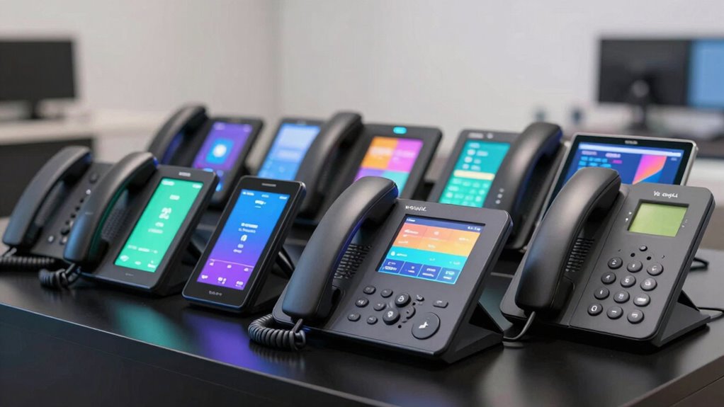 The number of lines supported by a VoIP desk phone directly affects how many calls it can handle simultaneously, making it a crucial factor in selecting the right device. If your organization manages high call volumes, choosing a phone with multiple lines ensures you can monitor and respond to several calls without switching devices. Entry-level models typically support 1 or 2 lines, suitable for individual users, while enterprise-grade phones can support 4, 6, or more lines for busy environments. Keep in mind, supporting more lines often means a larger display and extra soft keys for easy call control. Your choice should align with your communication needs, ensuring efficient call handling and effective multitasking in your daily operations.